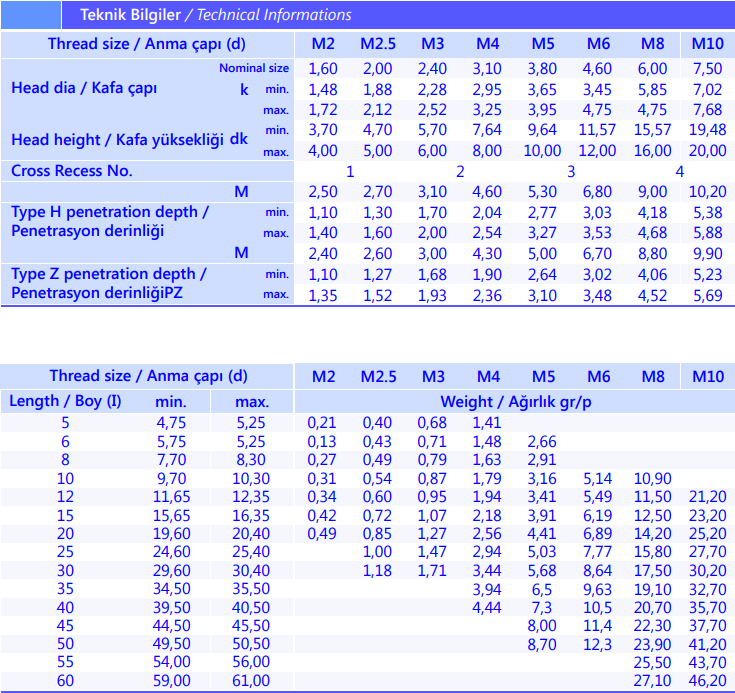 • DIN 7985 ISO 7045 YILDIZ SİLİNDİR BAŞ VİDA (YSB)