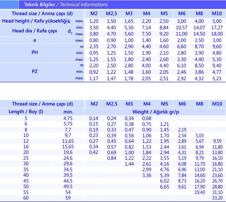 • DIN 965 ISO 7046 YILDIZ HAVŞA BAŞ VİDA (YHB)